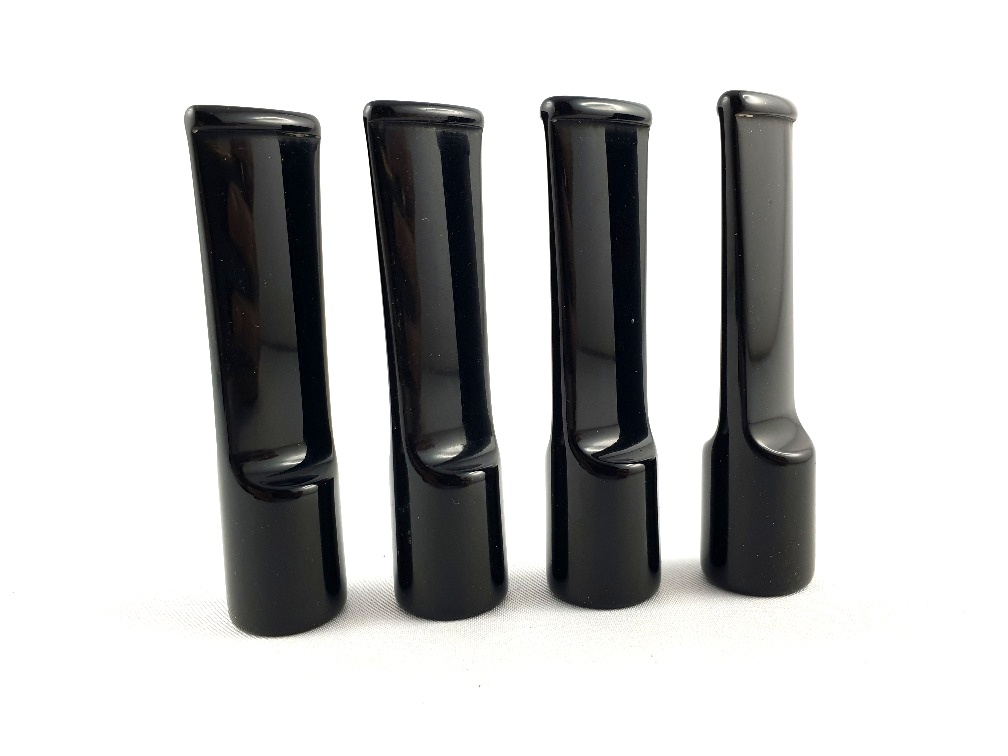 Akrylový černý náustek ve vysokém lesku určený k opracování.