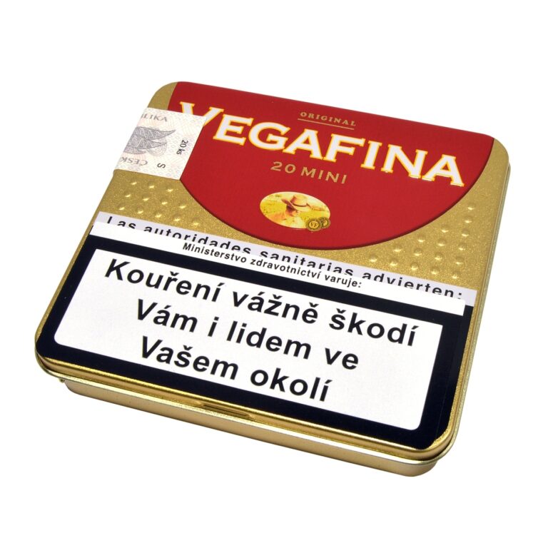 Doutníky Vegafina Original Mini. Cigarillos jsou balené po 20 doutníčkách v plechové krabičce.