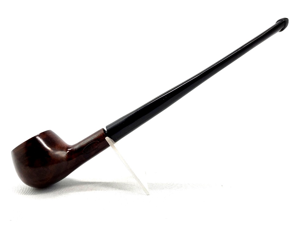 Rovná dýmka v hladkém provedení s kovovým chladičem a dlouhým ebonitovým náustekem.