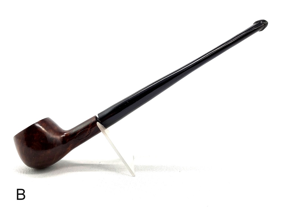 Rovná dýmka v hladkém provedení s kovovým chladičem a dlouhým ebonitovým náustekem.