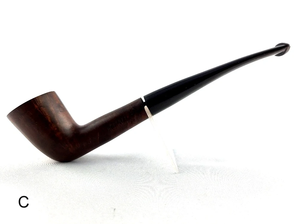 Elegantní dýmka s dlouhým ebonitovým náustkem je v hladkém provedení s kovovým chladičem.