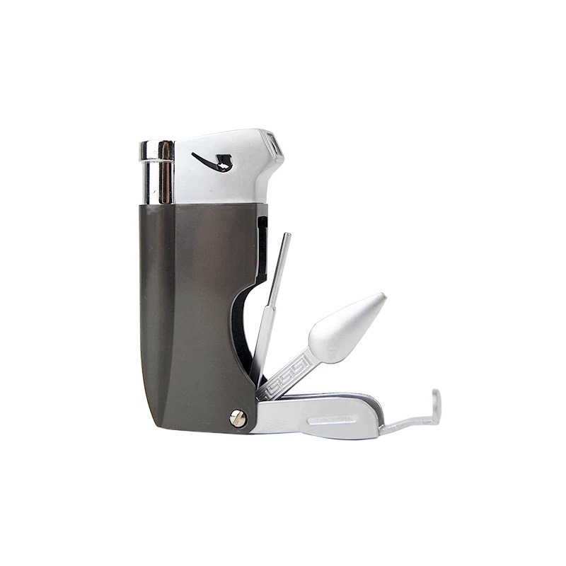 Dýmkový zapalovač ve tmavě šedé barvě. Zapalovač obsahuje dýmkové příslušenství. Dýmkový zapalovač je plnitelný a s možností nastavení výšky plamene. Je dodáván v dárkové krabičce.