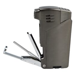 Masivní dýmkový zapalovač Winjet s trojdílným příslušenstvím pro dýmku. Kvalitně zpracovaný kovový zapalovač pro kuřáky dýmky s bočním plamenem je v gunmetalovém lesklém provedení. Dýmkový zapalovač je vybaven praktickým integrovaným dýmkovým příslušenstvím, které každý kuřák dýmky každodenně potřebuje. Na spodní straně zapalovače najdeme plnící ventil a ovládání intenzity plamene. Zapalovač je dodávaný v dárkové krabičce. Výška 7,2cm.