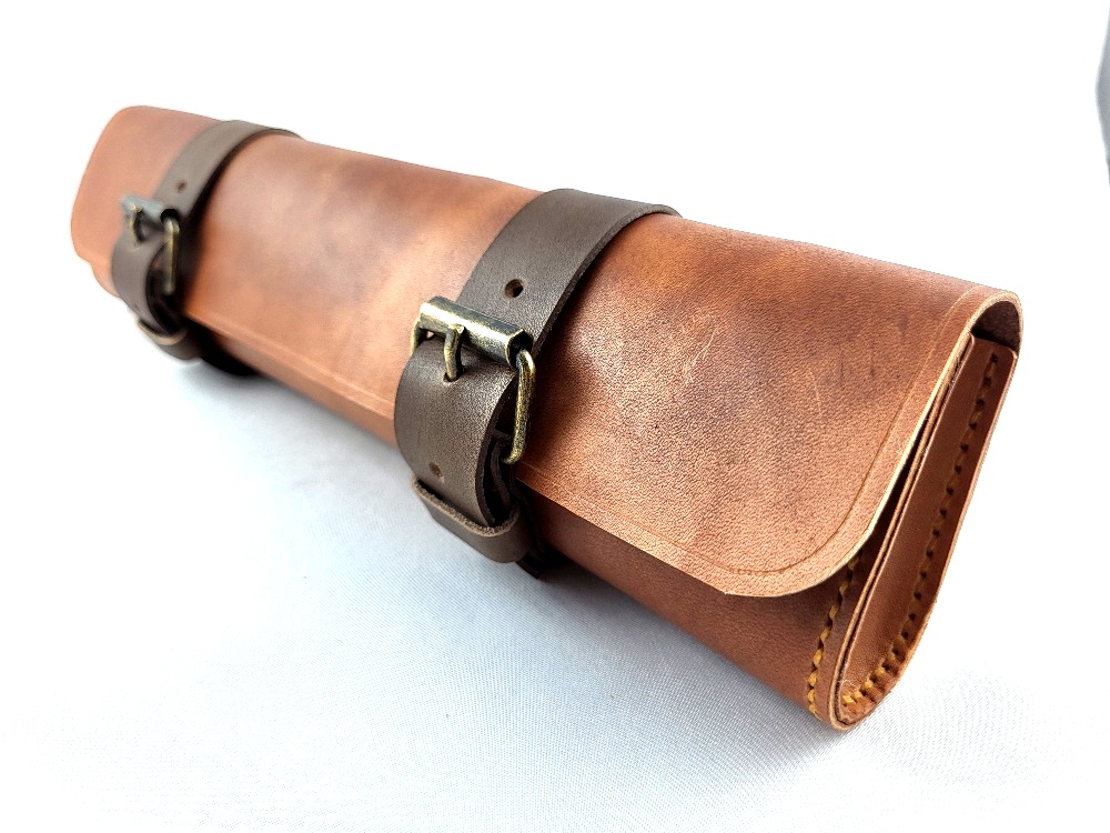 Ručně vyráběné kožené pouzdro s páskem. Je určené pro jednu zahnutou čtenářskou dýmku a na drobné příslušenství. (krapet tábáku, filtry, čističe, dusátko) Kožené pouzdro zaujme na první pohled a kvalitní materiál zabrání nechtěnému požkození dýmky či příslušenství.