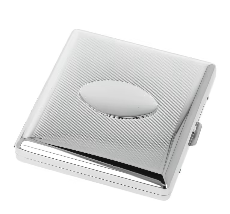 Kovová tabatěrka na 20 ks cigaret klasické velikosti (King Size). Cigaretové pouzdro GT v chromovém lesklém provedení je zdobené gravírovanými ornamenty. Zadní a přední strana pouzdra nejsou stejná. Cigarety jsou uvnitř tabatěrky zajištěny plíškem.
