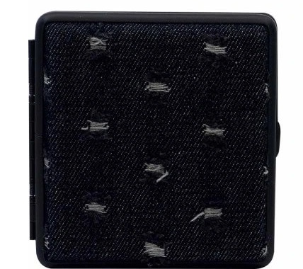 Kovová tabatěrka na 20 ks cigaret klasické velikosti (King Size). Cigaretové pouzdro WildFire Jeans má povrch potažený látkou z džínoviny. Atraktivní vzhled pouzdra dotváří černé matné okraje. Přední a zadní strana pouzdra je stejná. Cigarety jsou uvnitř tabatěrky zajištěny gumičkou.