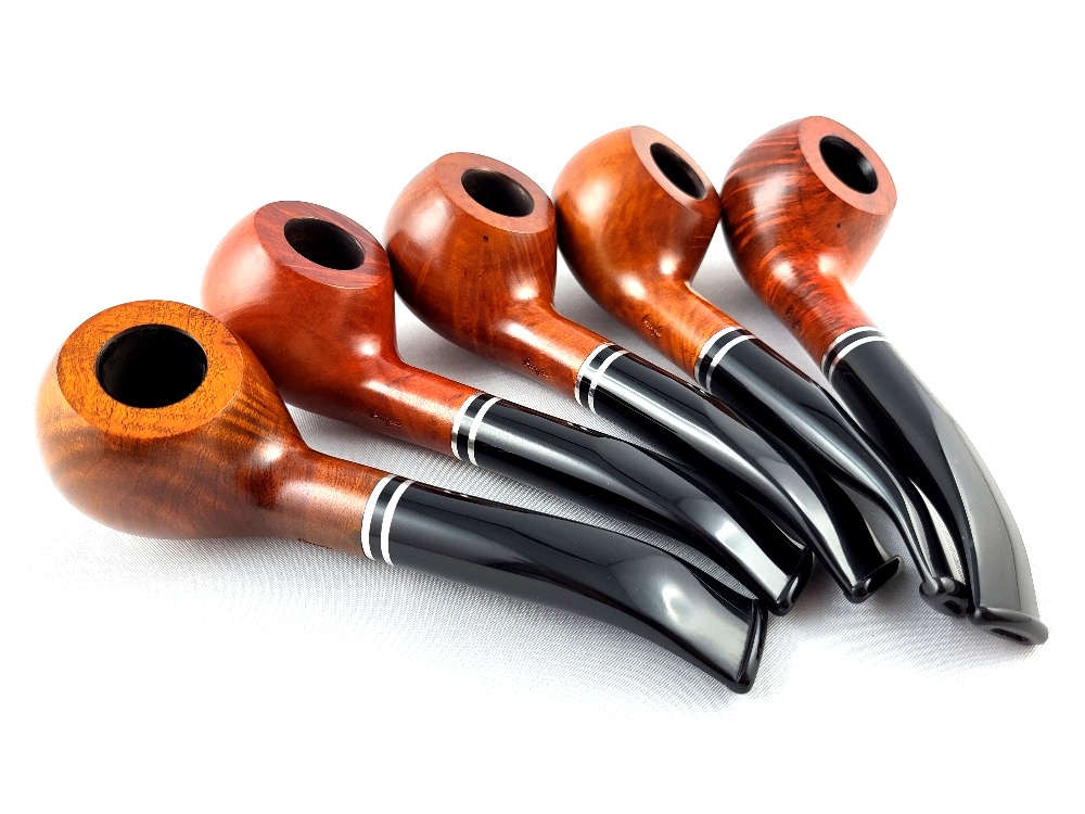 Angelo dýmka v hladkém provedení z vysoce kvalitního briárového dřeva. Akrylátový náustek s vysokým leskem a jemnýmI kovovými kroužky ve stříbrné barvě je osazen 9mm filtrem. Krásná zahnutá dýmk je vyrobena v Itálii a je dodáváma v papírové krabičce.