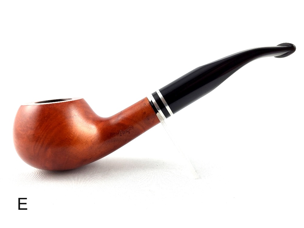 Angelo dýmka v hladkém provedení z vysoce kvalitního briárového dřeva. Akrylátový náustek s vysokým leskem a jemnýmI kovovými kroužky ve stříbrné barvě je osazen 9mm filtrem. Krásná zahnutá dýmk je vyrobena v Itálii a je dodáváma v papírové krabičce.