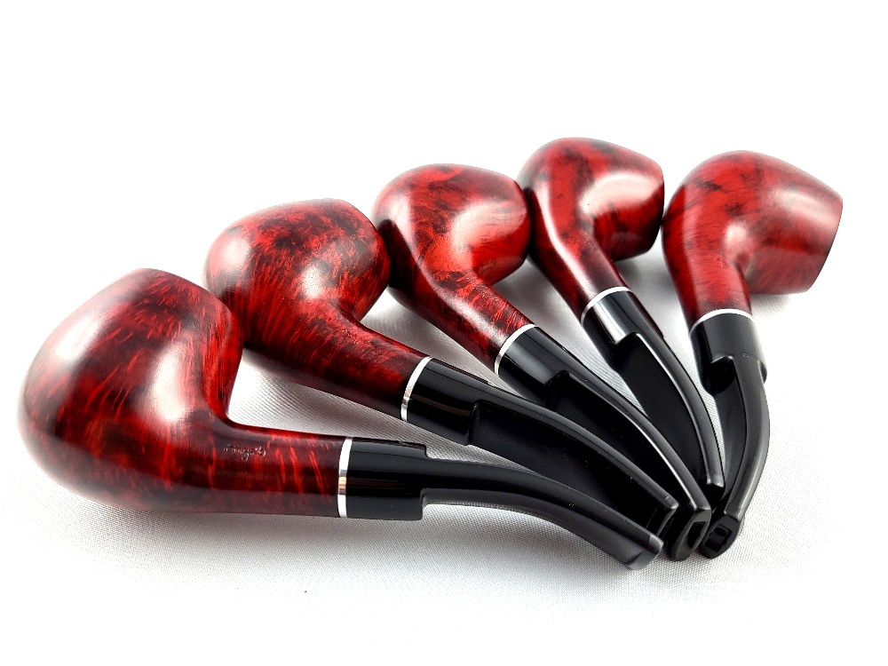 Angelo dýmka v hladkém provedení z vysoce kvalitního briárového dřeva. Akrylátový náustek krásného tvaru se širokým kovovým kroužkem ve stříbrné barvě je osazen 9mm filtrem. Zahnutá dýmka je vyrobena v Itálii a je dodávaná v papírové krabičce. Na boku je dýmka zdobená rytým nápisem "Angelo".