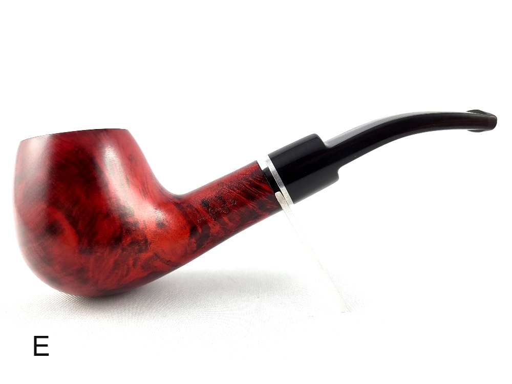 Angelo dýmka v hladkém provedení z vysoce kvalitního briárového dřeva. Akrylátový náustek krásného tvaru se širokým kovovým kroužkem ve stříbrné barvě je osazen 9mm filtrem. Zahnutá dýmka je vyrobena v Itálii a je dodávaná v papírové krabičce. Na boku je dýmka zdobená rytým nápisem "Angelo".