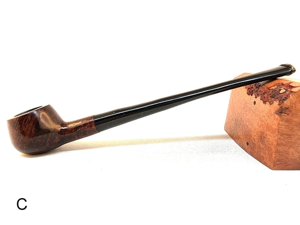 Rovná dýmka v hladkém provedení s kovovým chladičem a dlouhým ebonitovým náustekem.