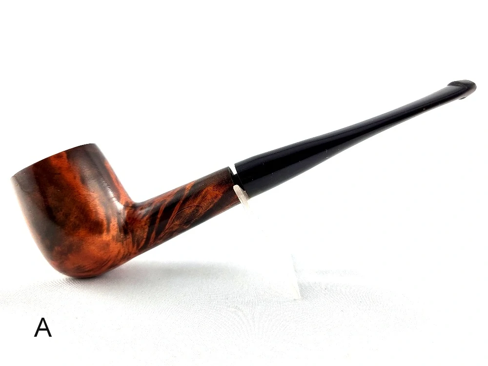 Drobná rovná dýmka v hladkém lesklém provedení s delším ebonitovým náustkem.