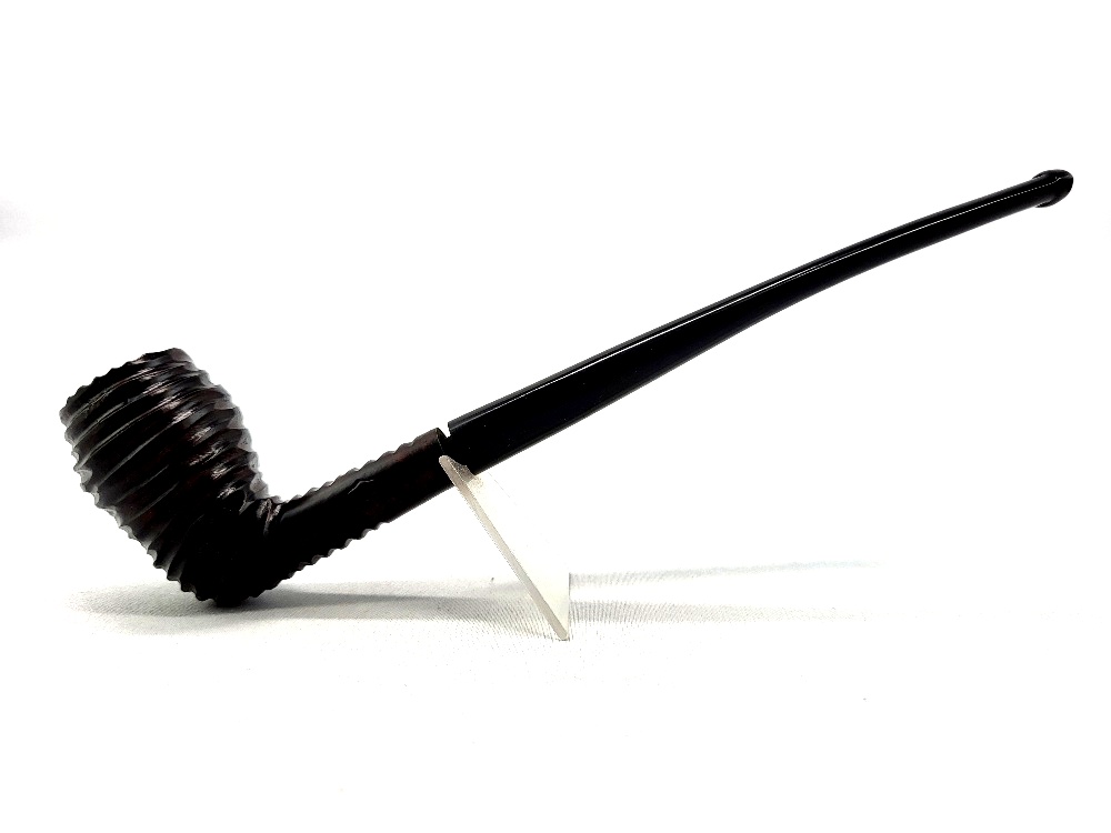 Rovná dýmka s delším náustkem v rustikovaném provedení.
