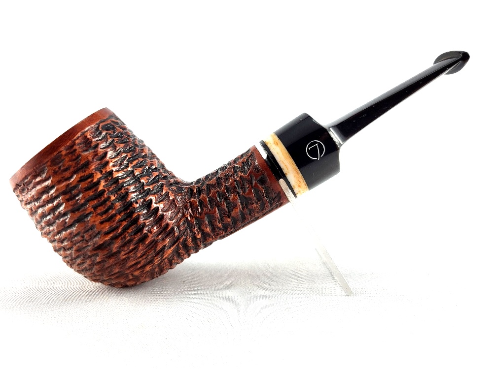 Rustikovaná hlava dýmky je v lesklém provedení, černý akrylátový náustek taktéž. Atraktivní vzhled dýmky ještě více zvýrazňuje ozdobný světlý prstenec. Každá Jirsovka je zdobená na horní a spodní straně známým logem Jirsa, podle kterého jasně dýmku identifikujeme. Dýmky Jirsa jsou zabalené do látkového pytlíku a dodávány v originální dárkové krabičce Jirsa.