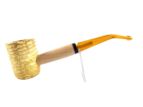 Kukuřičná dýmka Angelo Corn Cob s papírovým jednorázovým filtrem. Mírně zahnutá kukuřičná dýmka má hlubší hlavičku vyrobenou z kukuřičného klasu, krček ze dřeva a oranžový lesklý náustek je plastový. Dýmka z kukuřice se nemusí zakuřovat, ale kouří se hned naplno a první kouření hned chutná. Kukuřička je dobrou volbou pro začínající kuřáky, pro testování tabáku nebo třeba na dovolenou, čundr či párty, kde nevadí eventuální poškození či ztráta.