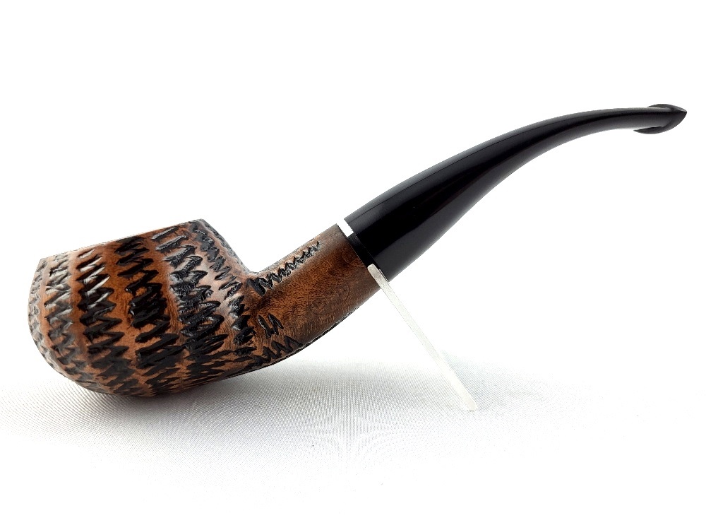 Zahnutá dýmka se silnými stěnami v rustikovaném provedení s filtrem 9mm.