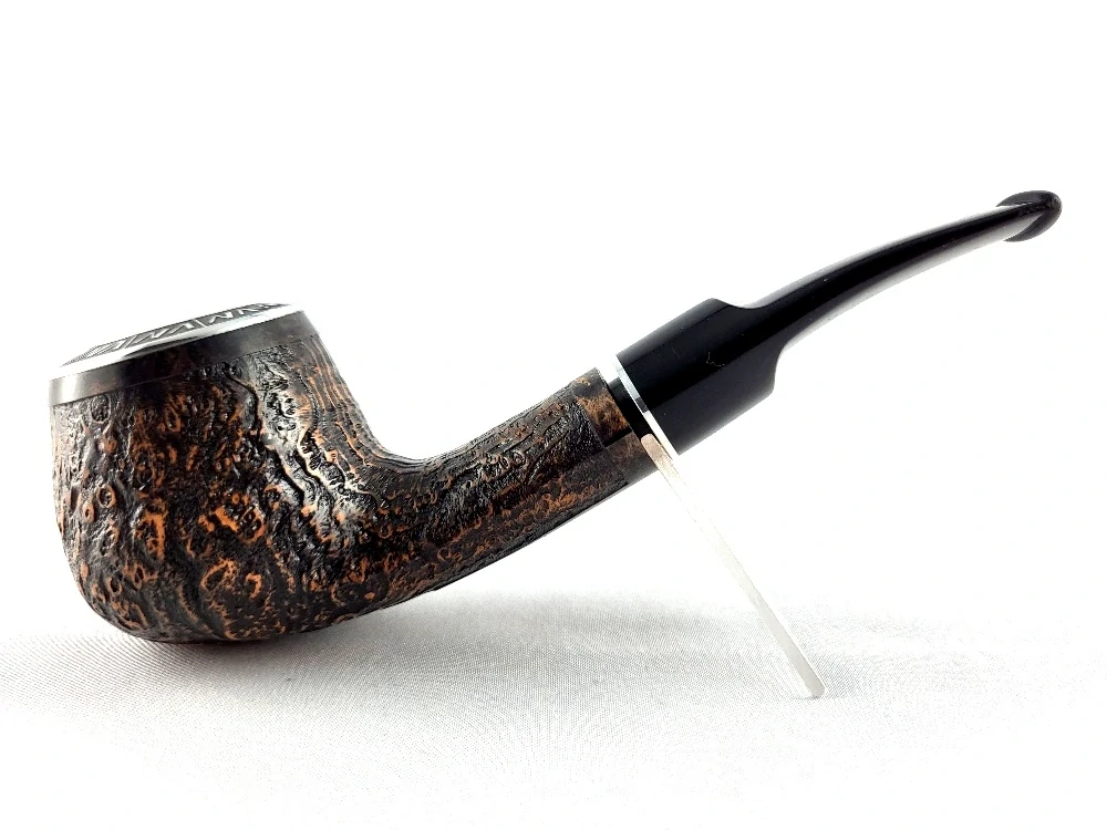 Dýmka z produkce firmy Vauen v pískovaném provedení. Dýmka zaujme hlavně díky stříbrnému prstenci s ozdobným gravírováním, který je zasazen do horní části hlavičky dýmky. Úzký hliníkový kroužek mezi krčkem a náustkem už jen potvrzuje krásu této dýmky.