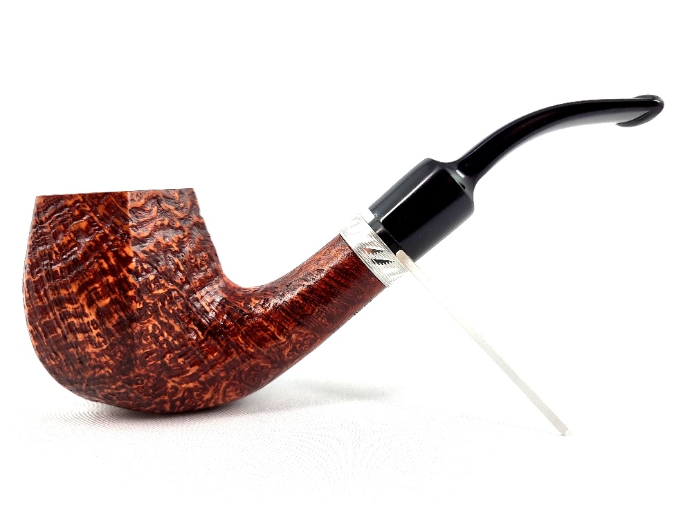 Výrazným detailem je stříbrný prstenec s jemně propracovaným reliéfem, jenž kombinuje lesklé a matné plochy a dodává dýmce rafinovaný vzhled. Jemné pískování v teplém oranžovém odstínu zvýrazňuje strukturu povrchu, dodává sérii příjemný charakter a zajišťuje komfortní úchop.