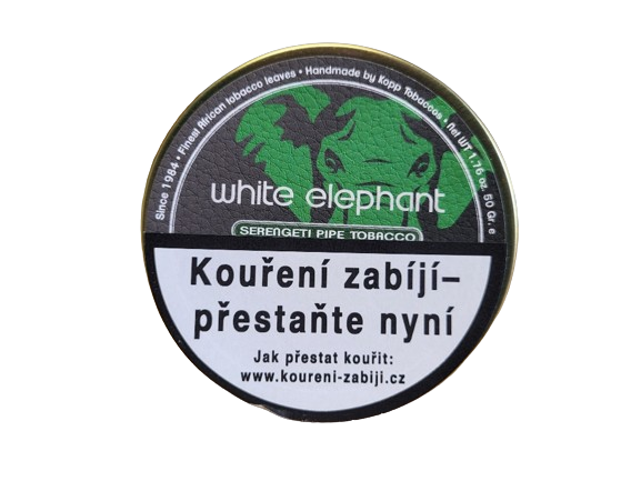 Dýmkový tabák White Elephant Serengeti 50gSkladem522 Kč/ ks431 Kč bez DPH