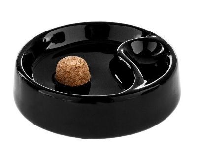 Dýmkový popelník s odkladem na jednu dýmky. Černý keramický popelník v lesklém provedení je vybavený praktickým korkovým trnem na vyklepání dýmky a prostorem pro odložení. Kulatý popelník na dýmky je dodávaný v kartonové krabici a je vyrobený v Itálii.