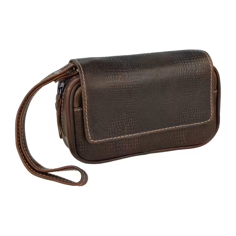 Etue - kožené pouzdro na 2 dýmky se zipem a poutkem. Precizně zpracované pouzdro na dýmky Crocco vyrobené z kvalitní kůže je ve tmavě hnědém odstínu. Kožený povrch s krokodýlím vzorem je v polomatném provedení. Po odklopení horní strany zavřené na magnet najdeme dvě kapsy např. na tabák a další potřebné dýmkové příslušenství. Po rozepnutí zipu se objeví hlavní prostor pro dvě dýmky s odepínací kapsou s patenty. Pouzdro nejen ochrání vaši oblíbenou dýmku, ale současně poskytne prostor pro vše potřebné pro kouření dýmky.