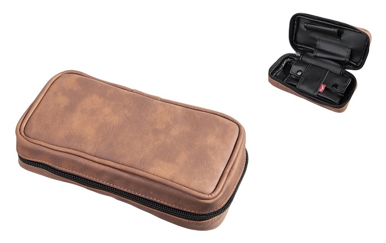 Etue - koženkové pouzdro na 2 dýmky se zipem. Pouzdro na dýmky s jemnou texturou na povrchu je ve hnědém polomatném provedení. Uvnitř pouzdra najdeme hlavní prostor pro dvě dýmky a vyjímatelnou taštičku na tabák. Praktické pouzdro nejen ochrání vaši oblíbenou dýmku, ale současně poskytne prostor pro vše potřebné pro kouření dýmky.