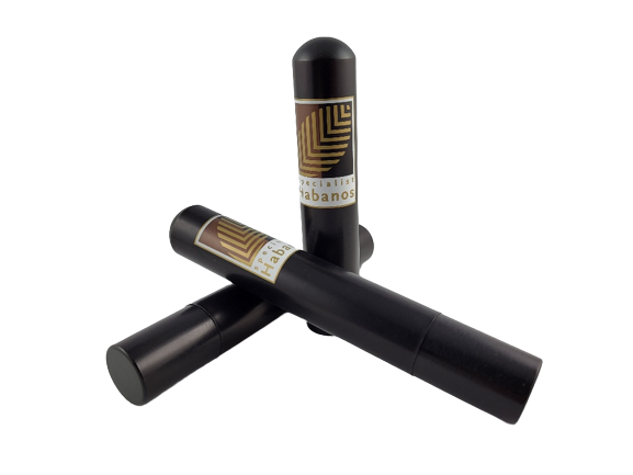 Pouzdro na jeden doutník. Pouzdro na doutník je dlouhé 150 mm, průměr 21 mm. Doutníkové pouzdro je plechové.