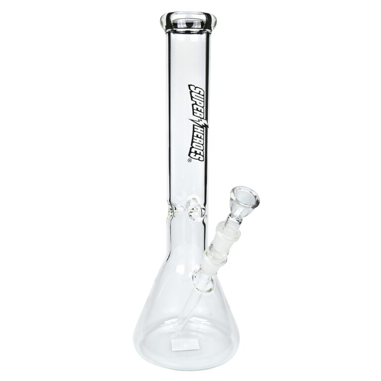 Kvalitní skleněný bong značky Super Heroes. Transparentní rovný ice bong na čelní straně zdobený logem Super Heroes je ukončený silnějším hrdlem. Skleněný bong je vybavený "výstupky" pro udržení kostek ledu k ochlazení kouře. Oproti standardním bongům je tento prémiový bong vyrobený ze skla tloušťky 5 mm. Chillum bongu se skládá ze dvou dílů.