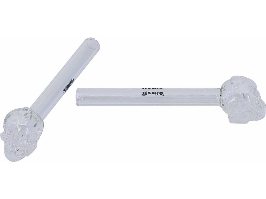 Skleněná šlukovka Lebka čirá. Rovná šlukovka z kvalitního skla. Díky svojí malé hmotnosti a zpracování lehce padne do ruky.