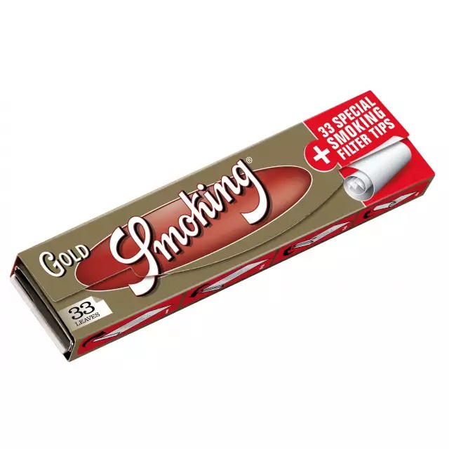 Cigaretové papírky Gold Smoking King Size Slim s filtry jsou prémiovou verzí dlouhých papírků z klasické edice Gold. Tyto papírky jsou ultra tenké a vyrobené z neběleného papíru. Díky své extrémní tenkosti se zdají být takřka průhledné a garantují dokonale pozvolné a rovnoměrné hoření. Lep tvoří 100% přírodní arabská guma bez jakýchkoli příměsí. Knížečka obsahuje 32 papírků + 32 papírových filtrů.