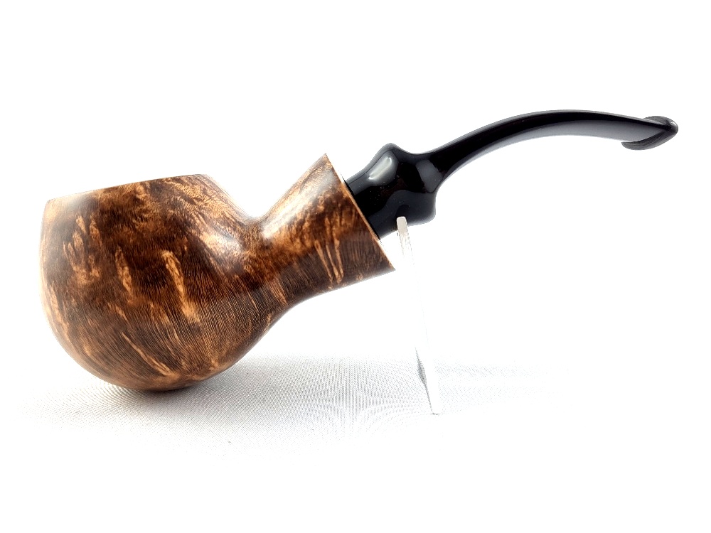 Dýmka z dílny Stanislava Hoška. Dýmka netradičního tvaru je v hladkém provedení s krásnou kresbou dřeva a černým akrylovým náustkem.