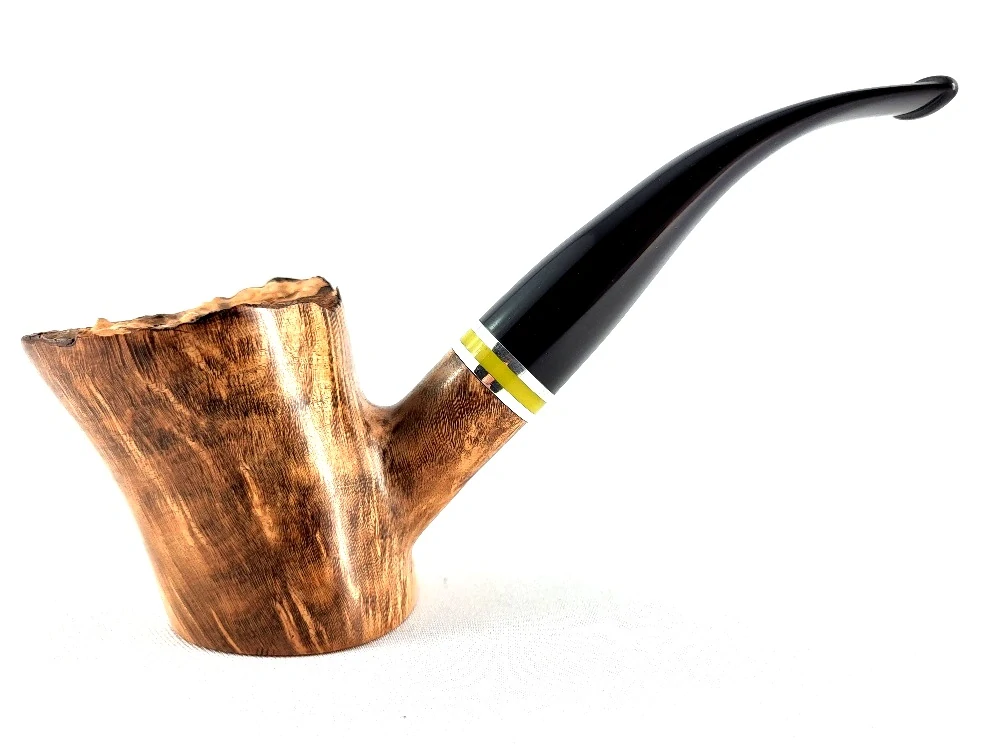 Dýmka z dílny Stanislava Hoška. Mohutná dýmka v hladkém provedení s nádhernou kresbou. Černý dlouhý akrylový náustek je doplněn žluto-stříbrným náustkem.