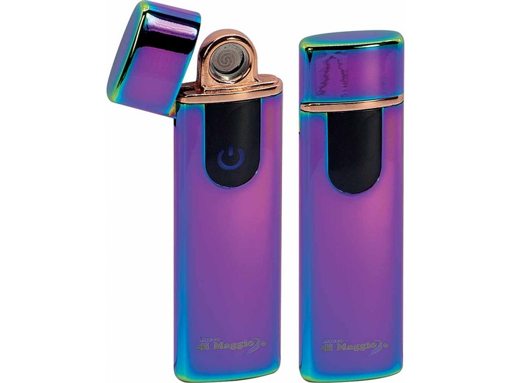 USB zapalovač s elektrickým zapalováním - žhavící spirála a USB dobíjením. Kovový elektrický Lucca di Maggio zapalovač je v duhovém provedení. Zapálení USB zapalovače se aktivuje odklopením horního poklopu a zmačknutím černého tlačítka, žhavící spirála se začne žhavit a je připravena zapálit cigaretu. Ve spodní části USB zapalovače otvor pro dobíjení. Kabel je součástí balení.