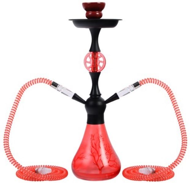 Vodní dýmka Spring Red je vysoká 44 cm. Dvoušlauchová vodní dýmka je v matném červeno černém provedení se skleněnou vázou zdobenou leptaným motivem. Vodní dýmka je dodávaná se dvěmi gumovými šlauchy, které jsou ukončeny plastovým náustkem. Kovové tělo dýmky se upevňuje nasunutím na vázu s použitím přiloženého gumového těsnění. V obsahu balení najdete tělo dýmky, vázu, gumovou hadici s plastovým náustkem a konektorem pro připojení, keramickou korunku, potřebné těsnění, talířek a kleště na uhlíky. Vodní dýmka Spring je dodávána v kartonové krabici.