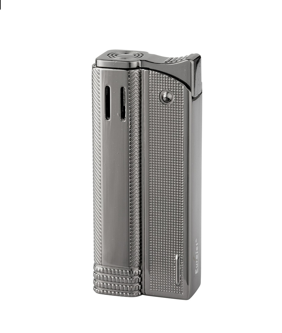 Stylový tryskový zapalovač Eurojet Slim. Kovový retro zapalovač rakušák s jemně gravírovaným povrchem je v lesklem stříbrnošedém provedení. Po stisknutí horního krytu zapalovače se zapálí tryska. Ve spodní části zapalovače najdeme plnící ventil plynu a ovládání intenzity plamene. Zapalovač je dodáván v dárkové krabičce. Výška 6,3cm.