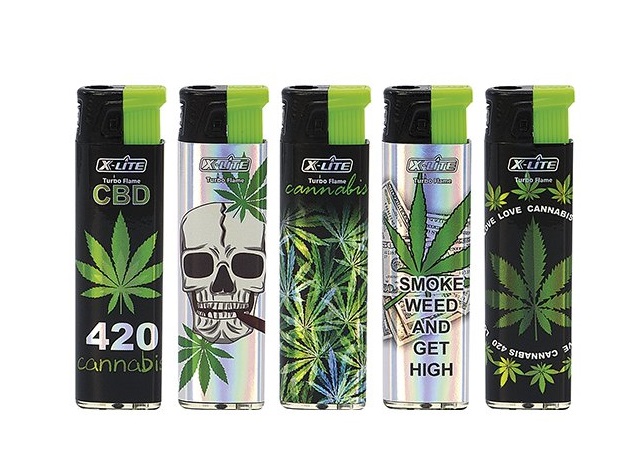 Plastový zapalovač s piezo-elektrickou jiskrou a automatickou regulací výšky turboplamene, mix dekorací.